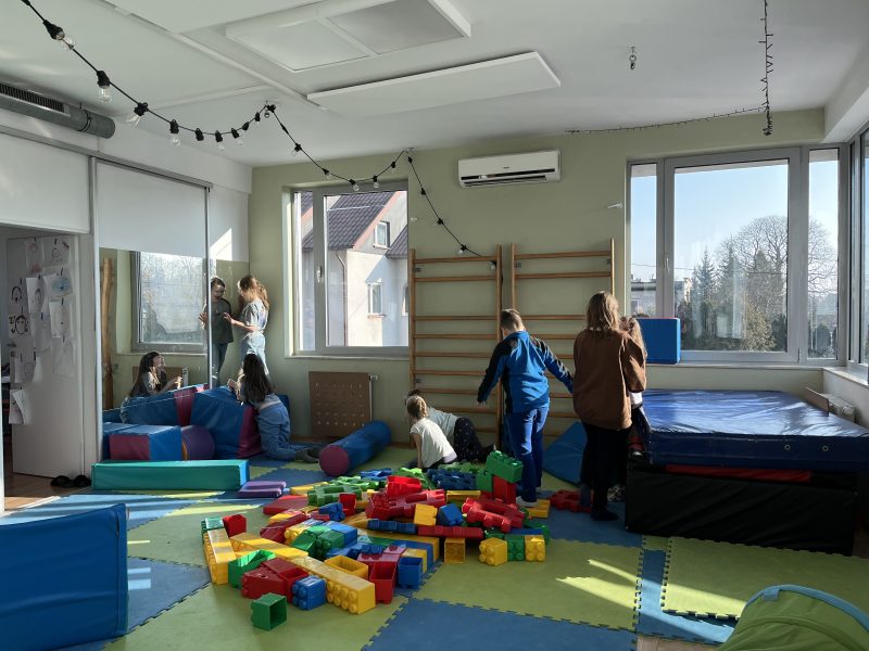 Przy Trakcie Lubelskim 204 w Wawrze czekają na uczestników dwie przestronne sale: jedna do zajęć gimnastycznych, akrobatycznych i tanecznych oraz druga – wyposażona w stoły – do działań artystycznych, komputerowych i eksperymentów.